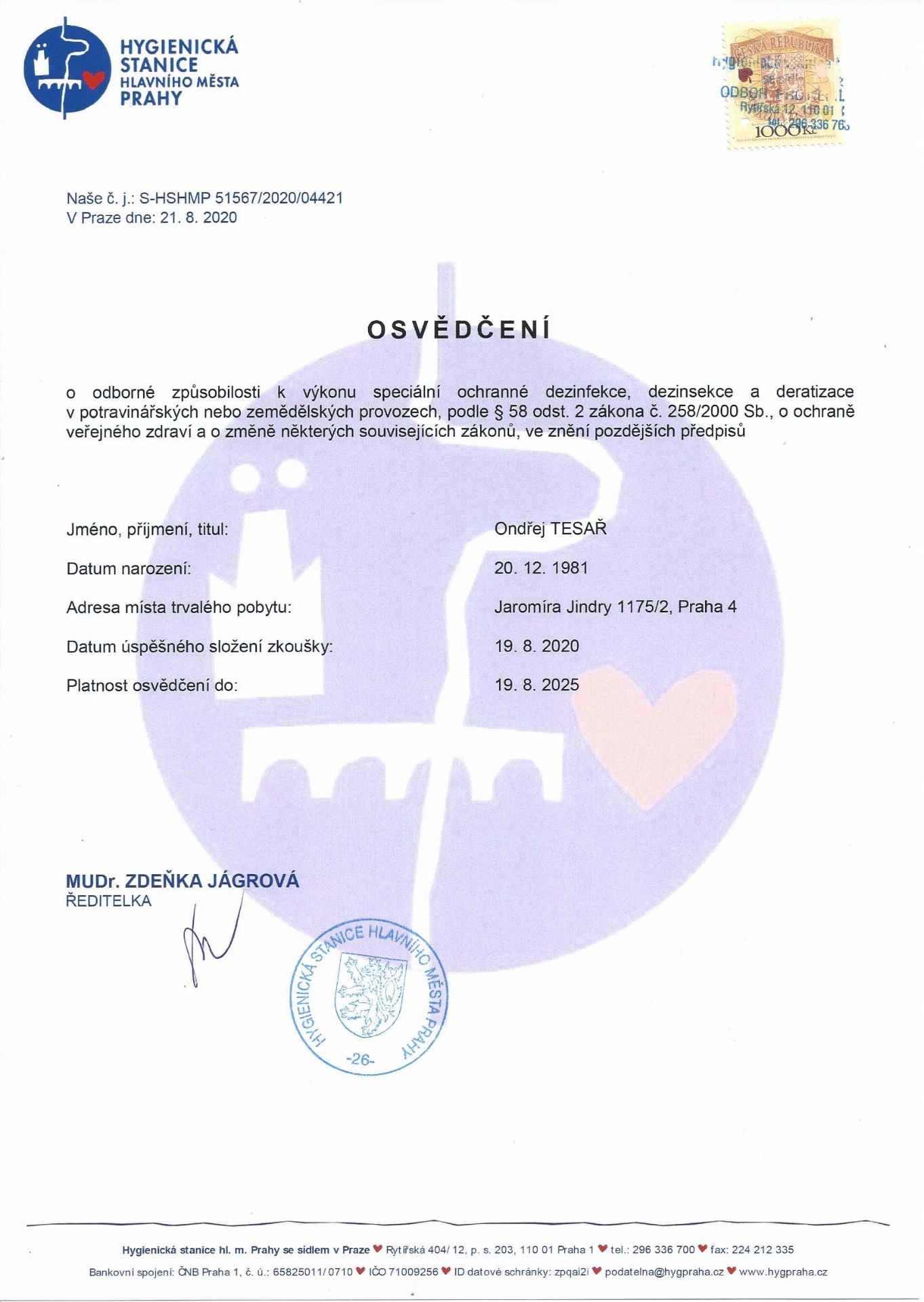 2. Speciální ochranná dezinfekce, dezinsekce a deratizace prováděná v potravinářských nebo zemědělských provozech.